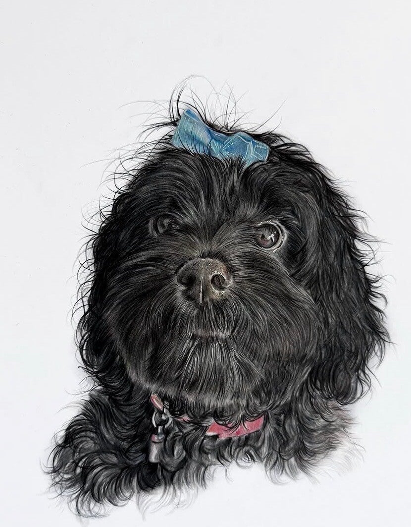 Using professional colour pencils, I carefully layer tones to create depth and lifelike detail, with particular attention to the eyes and texture of the fur. My style uses soft, natural colours to keep each piece timeless and true to the subject. Each portrait is entirely hand-drawn and created to be a meaningful, lasting piece of art.